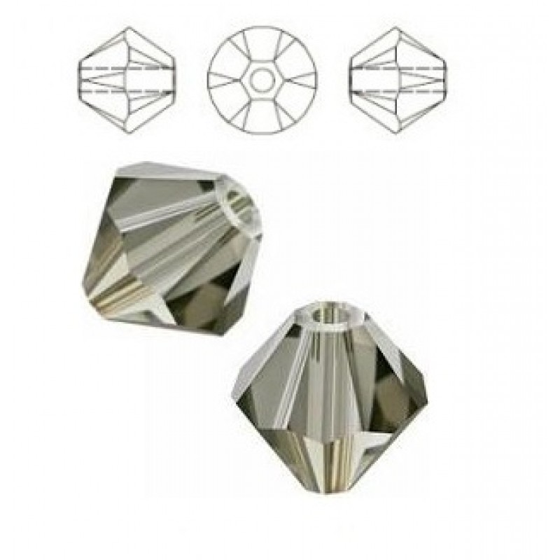 Pelēcīgas krāsas SWAROVSKI bikonuss, caurspīdīgs, ar SWAROVSKI kristāliem raksturīgo mirdzumu. Cena par 10 kristāliem.