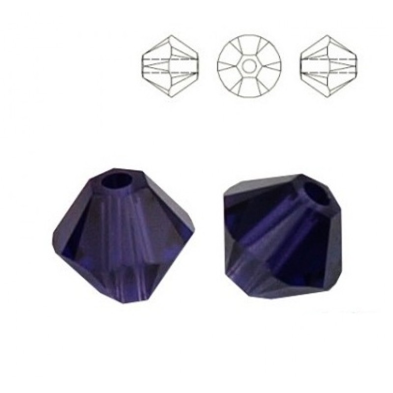 Tumši lillā krāsas bikonuss, caurspīdīgs, ar SWAROVSKI kristāliem raksturīgo mirdzumu. Cena par 10 kristāliem.