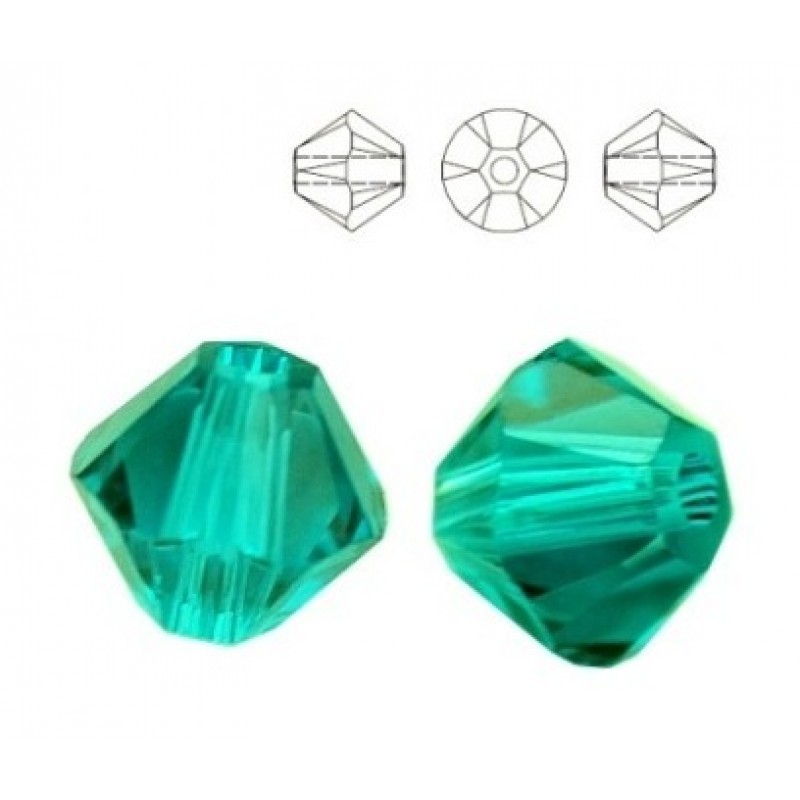Zaļganzilas krāsas bikonuss, caurspīdīgs, ar SWAROVSKI kristāliem raksturīgo mirdzumu. Cena par 10 kristāliem.