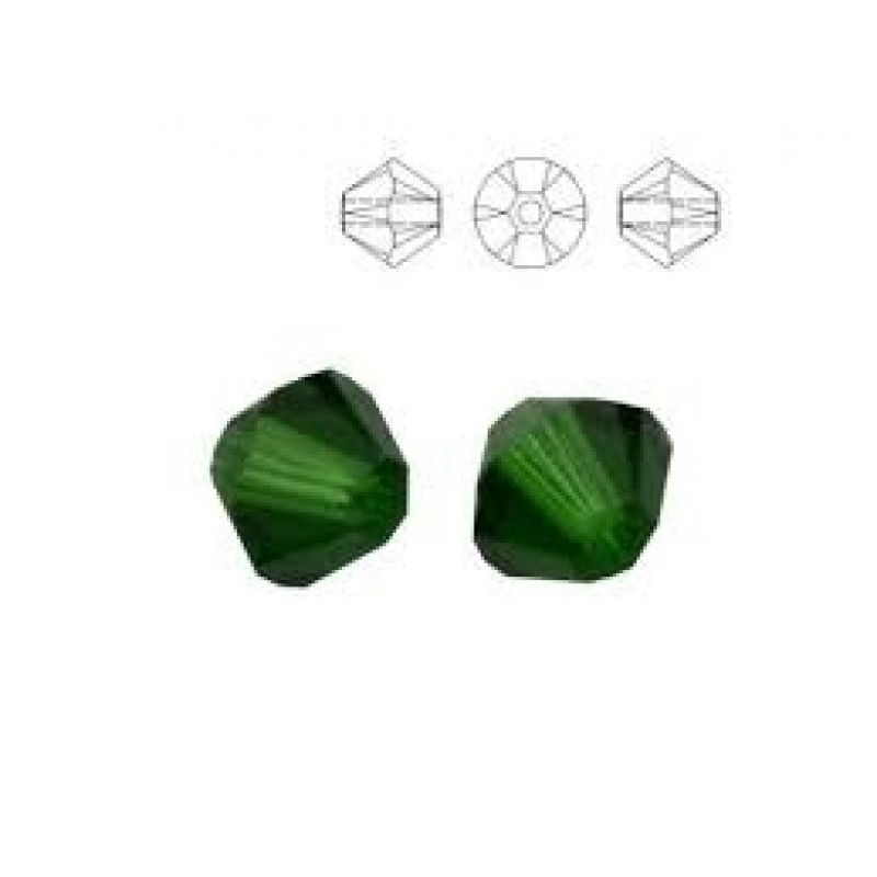 Tumši sūnu zaļas krāsas bikonuss, caurspīdīgs, ar SWAROVSKI kristāliem raksturīgo mirdzumu. Cena par 10 kristāliem.