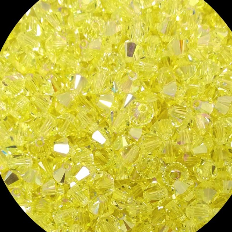 Dzeltenās narcises krāsas SWAROVSKI bikonuss 4mm, caurspīdīgs, ar AB efektu no vienas puses.