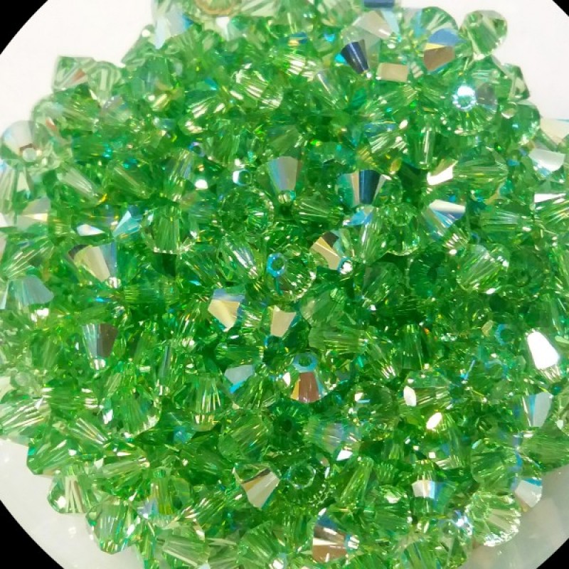 Gaiši zaļas krāsas SWAROVSKI bikonuss 4mm, caurspīdīgs, ar AB efektu no vienas puses.