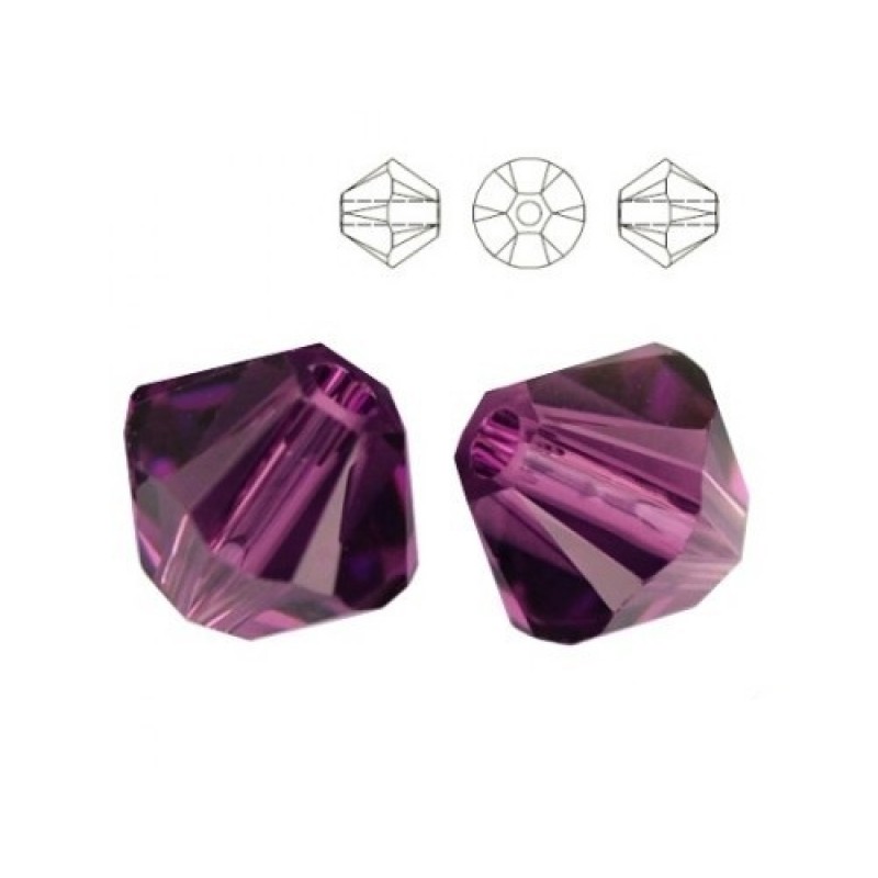 Ametista krāsas SWAROVSKI bikonuss, caurspīdīgs, ar SWAROVSKI kristāliem raksturīgo mirdzumu. Cena par 10 kristāliem.