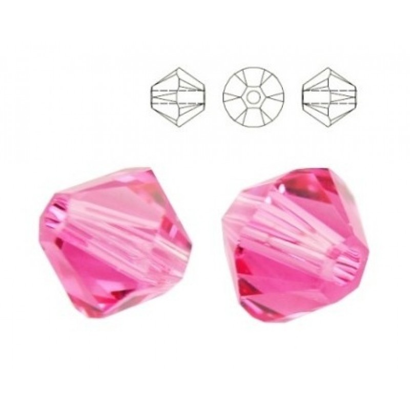 Izteikti rozā krāsas bikonuss, caurspīdīgs, ar SWAROVSKI kristāliem raksturīgo mirdzumu. Cena par 10 kristāliem.