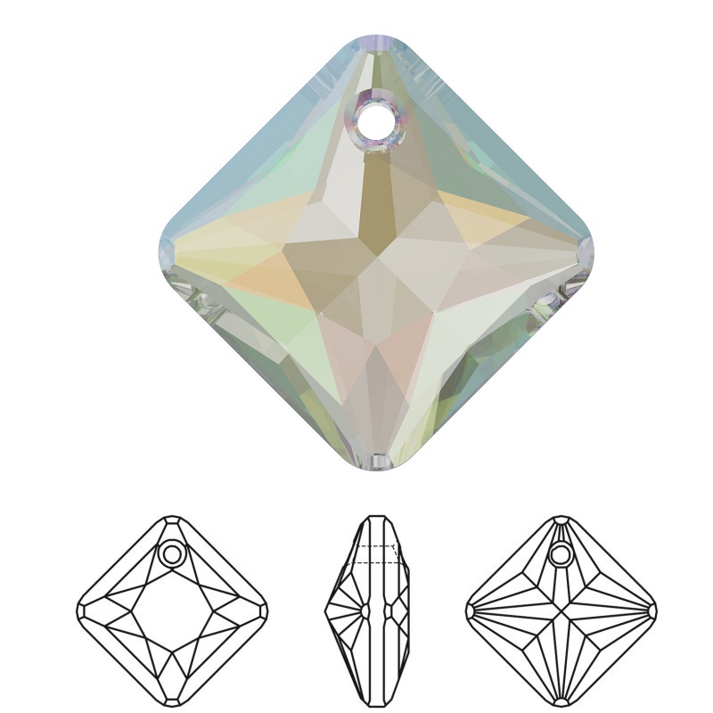 SWAROVSKI 6431 Princess Cut Pendant 16mm Crystal (001) Aurore Boreale (AB) (x1)
