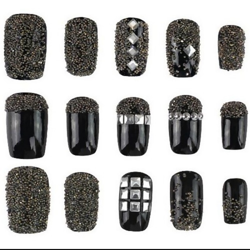 Sastāv no 5g kristāla bumbiņām un gabaliņiem pelēkos un melnos toņos, 30 gab plakanie kristāliņi nagu dizainam, piltuvīte un instrukcijas.