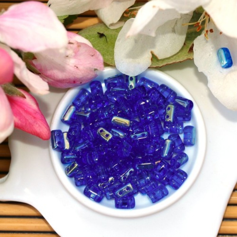Rulla pērles, krāsa Transparent Sapphire AB. Cena par 10g iepakojumu, aptuveni 93-95 pērles.