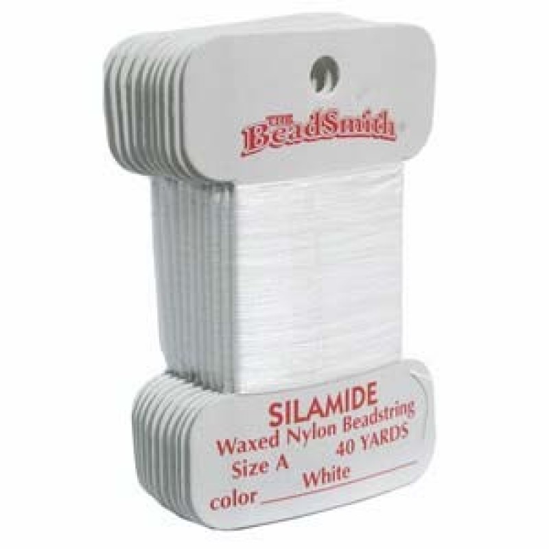 A izmēra silamīda diegs - ar vasku apstrādāts neilona diegs pērļošanai. Diegu izmanto īpaši smalku sēkliņpērlīšu projektu veidošanai.
