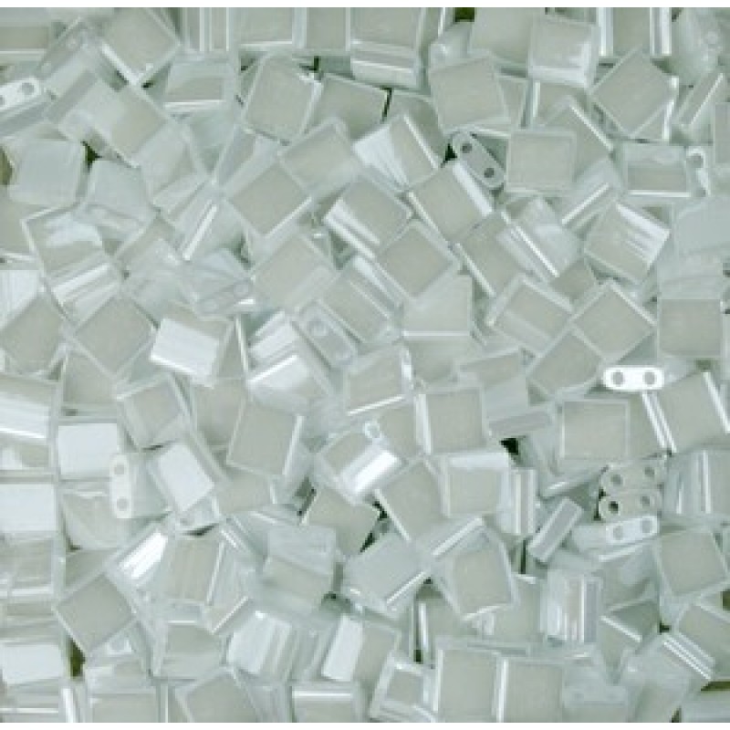 Divu caurumu Tila pērles. To izmērs ir 5x5x1.9 mm un katrai pērlei ir divi paralēli 0.8mm lieli caurumi. Vienā gramā ir aptuveni 12 Tila pērles. Tieši tā pat kā citas pērles no Miyuki, arī šīs ir vienādas pēc izmēra un formas. Cena par 5 g iepakojumu (+/- 60 pērles, atkarīgs no pārklājuma).