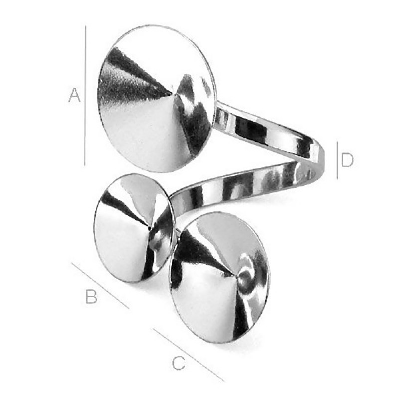 S-veida regulējams gredzens ar trim pamatnēm 12 - 14 - 16 mm Rivoli kristāliem. Jūsu fantāzijai nav rozežas! Jauciet un piemērojiet krāsas pēc brīvas izvēles.